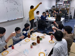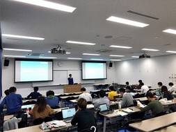 各学生が4セッションに別れ、自分の取り組む研究や取り組みたい研究について発表を行いました。発表は1セッションをショットガンラウンドとディスカッションラウンドの2つのフェーズで構成し、5~6人が発表を行います。ショットガンラウンドでは質疑応答を挟まずに1人4分という短い時間で口頭発表を行い、その後ディスカッションラウンドにて、発表内容について熱い議論を交わしました。3年生の学生もいる中、学生から積極的に質問や意見が飛び出し、とても有意義な研究会になりました。最後には食事会を行い親睦を深めました。
